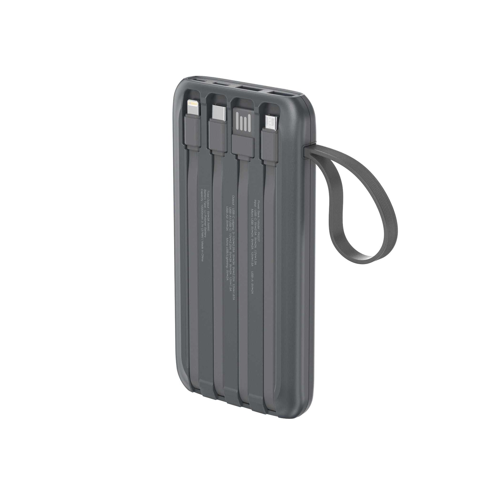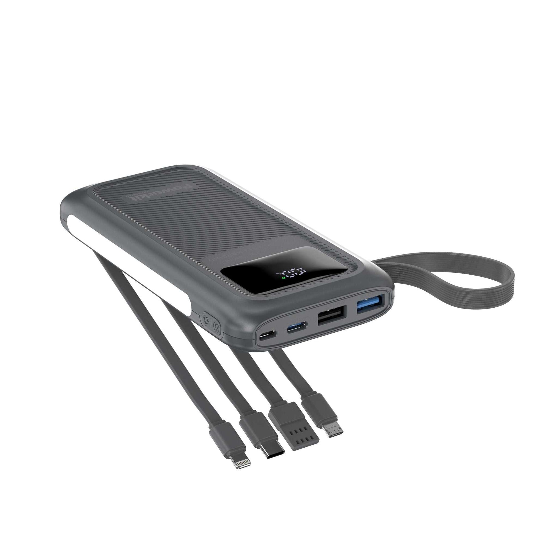 Powerbank 10.000 mAh - hurtigopladning - indbygget display og kabler