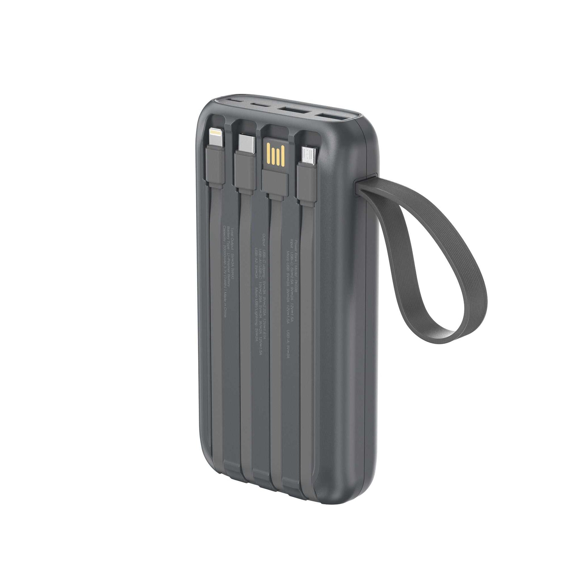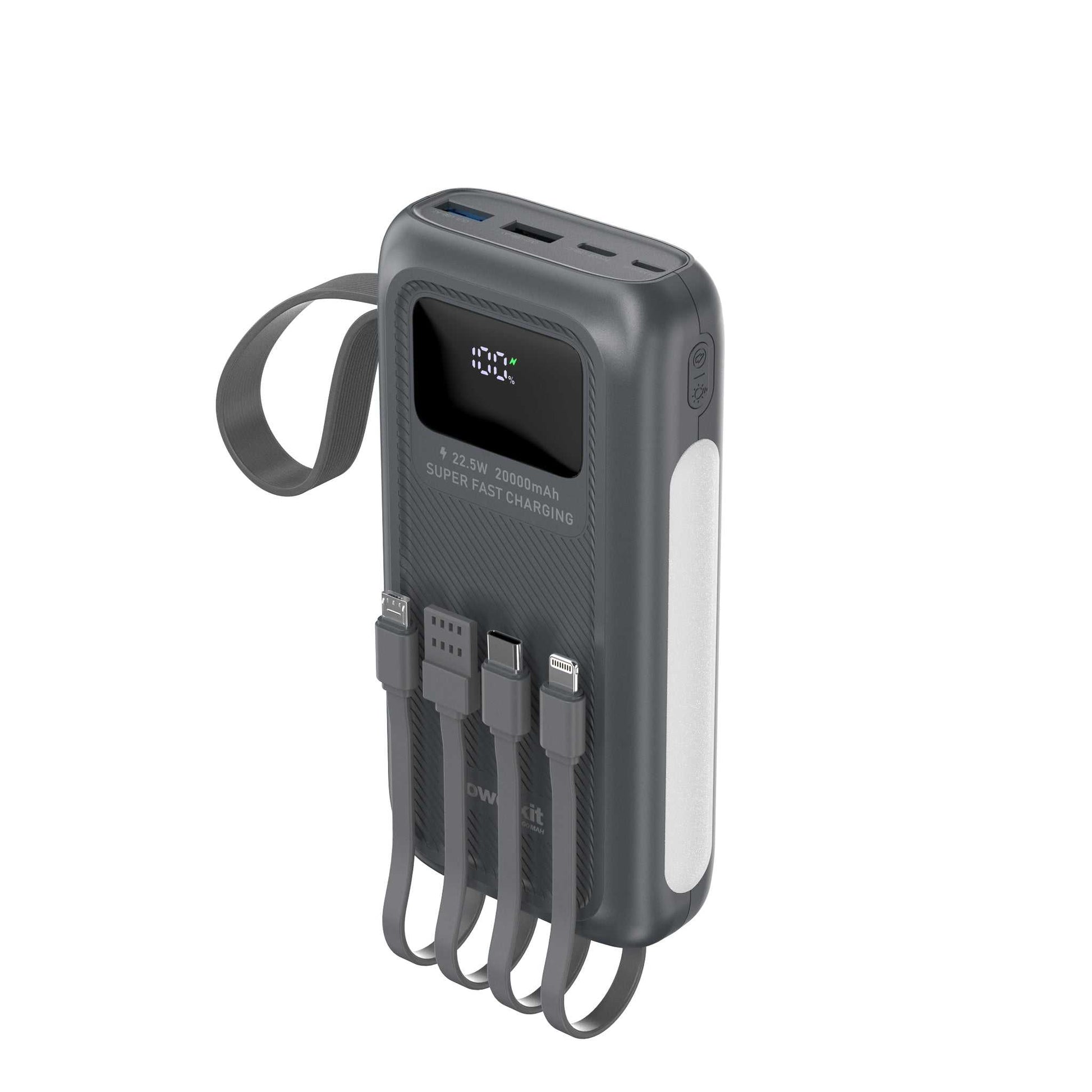 Powerbank 20.000 mAh - hurtigopladning - indbygget display og kabler