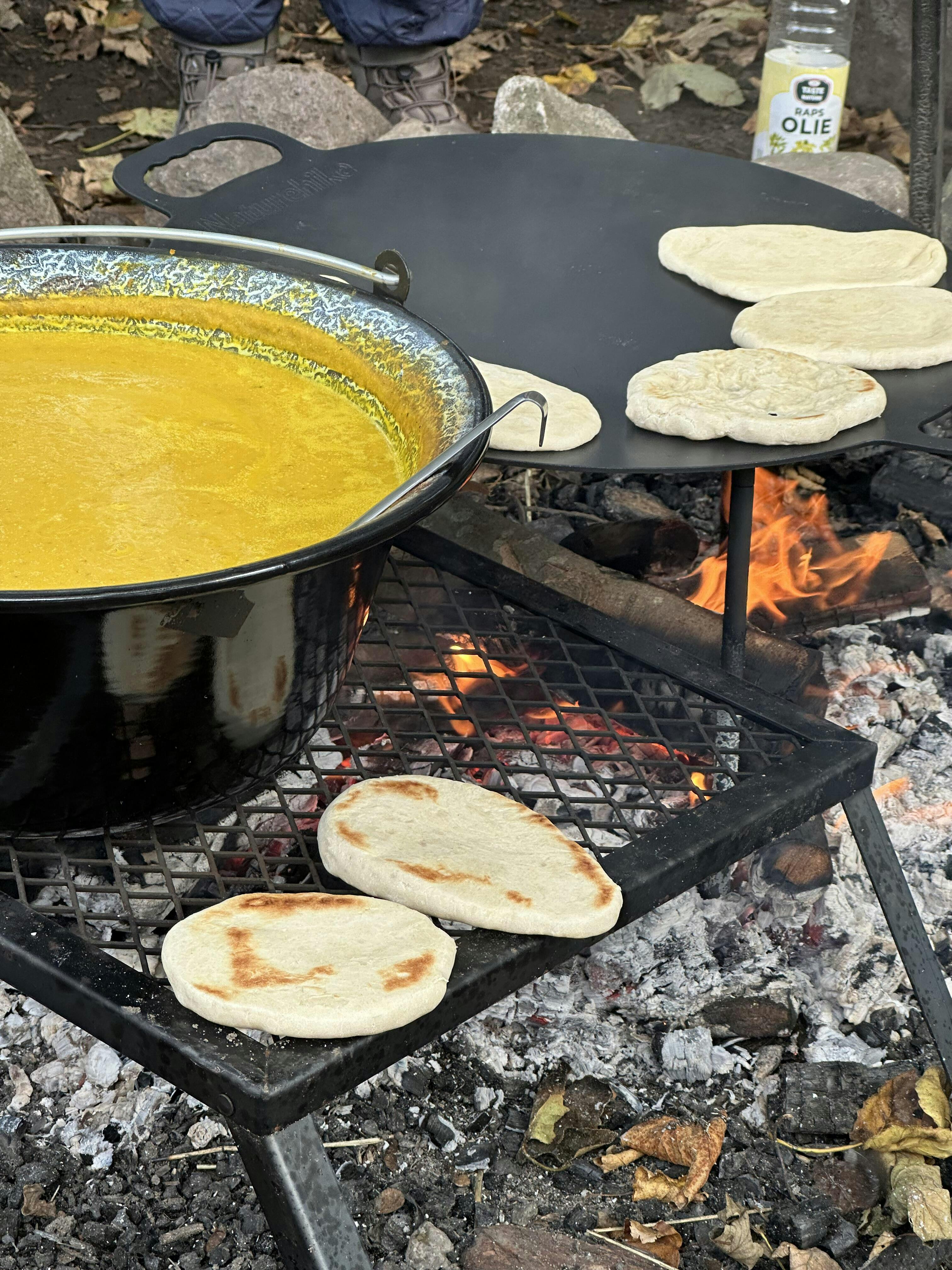 ✔️ Kan bruges med stativ, grillrist eller direkte på gløder